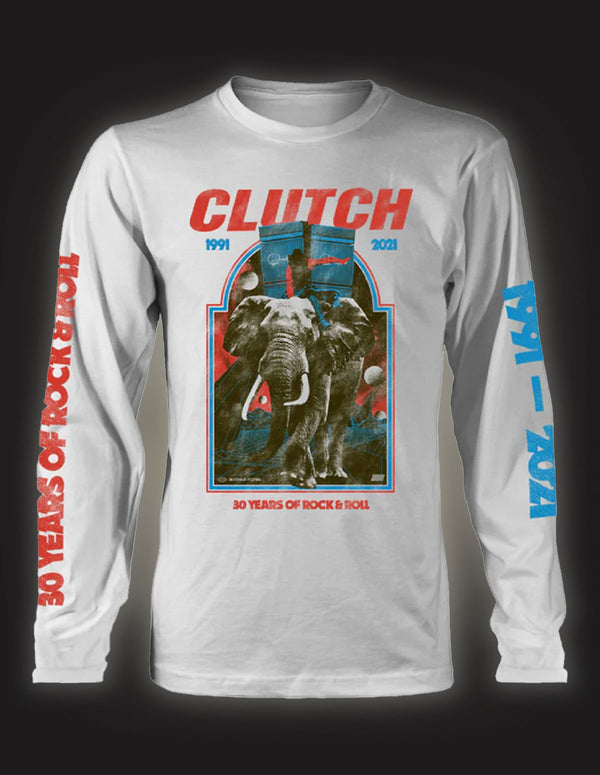 CLUTCH "Elephant 30 yrs" Longsleeve-Shirt WHITE